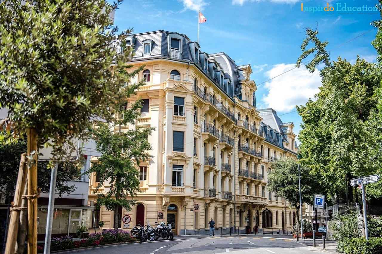 HiM có vị trí cực kì đắc địa, nằm tại trung tâm thành phố Montreux, bên cạnh bờ hồ Geneva và một bên là dãy núi Alps hùng vĩ. Khuôn viên nhà trường chỉ cách bến tàu hoả 3 phút đi