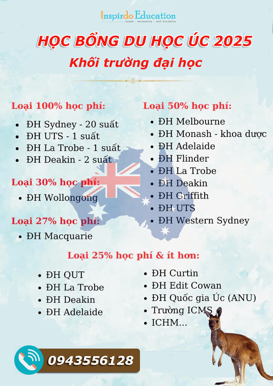 Inspirdo xin cập nhật học bổng từ các trường đại học tại Úc cho kỳ nhập học 2025 dành cho những bạn có mong muốn du học Úc tham khảo nhé!