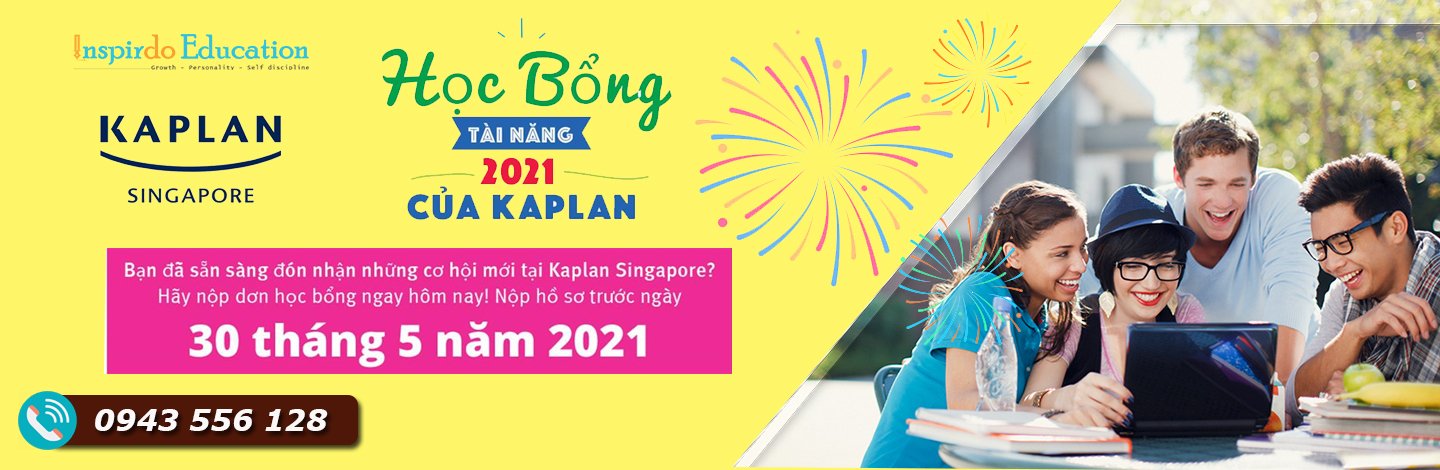 Học viện Kaplan Singapore là thành viên của tập đoàn Kaplan, một trong những tập đoàn lớn nhất thế giới về giáo dục có cơ sở đào tạo trên 35 quốc gia (Anh, Úc, Mỹ, Singapore và nhiều quốc gia khác). Tại Singapore, Kaplan là 1 trong 3 học viện được yêu thích nhất và hàng năm thu hút lượng lớn sinh viên theo học, trong đó có sinh viên Việt Nam. Trong năm 2021, nhằm thu hút sinh viên triển vọng, có thành tích học tập xuất sắc, học viện Kaplan đã triển khai HỌC BỔNG TÀI NĂNG TRỊ GIÁ 100% HỌC PHÍ dành riêng cho sinh viên Việt Nam. Nếu bạn đang muốn theo học tại học viện Kaplan thì không thể bỏ lỡ cơ hội săn học bổng giá trị này. Nhanh tay liên hệ với Inspirdo Edu để apply hồ sơ săn học bổng HOÀN TOÀN MIỄN PHÍ.