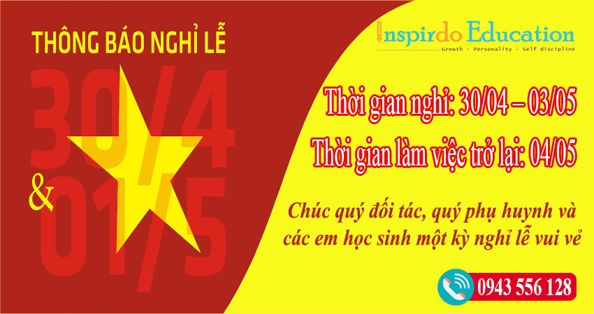 Du học Inspirdo Edu trân trọng thông báo đến Quý đối tác, Quý phụ huynh và các em học sinh về thời gian nghỉ lễ - Ngày Thống Nhất Đất Nước 30/04 và Quốc Tế Lao Động 01/05.